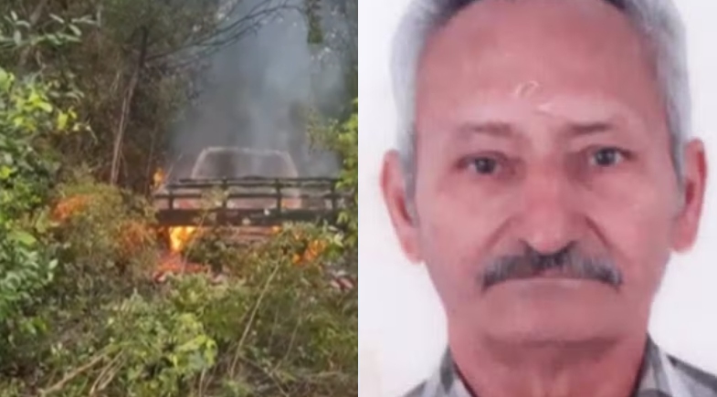A caminhonete do idoso foi abandonada pelos criminosos e incendiada na segunda-feira (6), na tentativa de limpar as provas do crime, de acordo com a Polícia Civil.