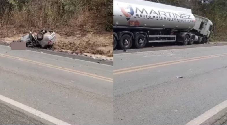 Uma colisão entre um caminhão-tanque e um carro de passeio deixou um casal morto, na manhã desta sexta-feira (20), na PI-236, saída do município de Angical (PI). Imagens obtidas pelo MeioNews mostram um dos veículos capotado às margens da rodovia.