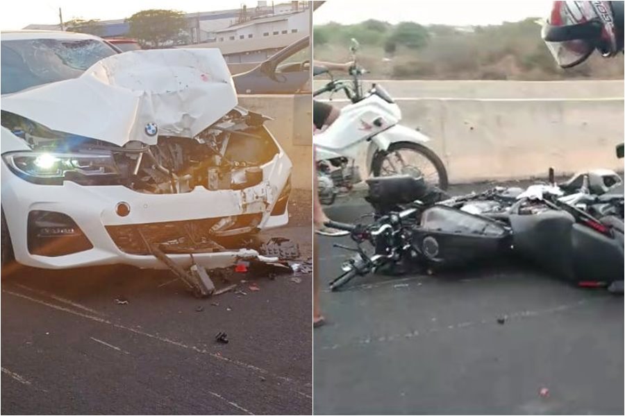 Colisão entre carro de luxo e moto deixa motociclista morto em viaduto de Teresina | Foto: Imagem: Reprodução/WhatsApp