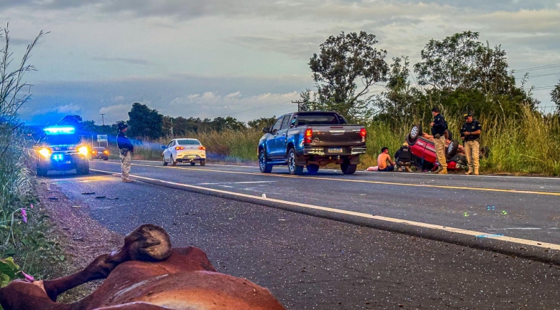 Os animais estavam soltos na rodovia, quando foram atingidos pelo veículo que seguia da cidade de Piracuruca em direção à capital Teresina. O impacto da colisão resultou no capotamento do veículo.