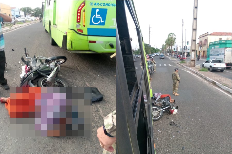 Colisão entre moto e ônibus deixa mulher ferida no Centro de Teresina | Foto: Reprodução/WhatsApp