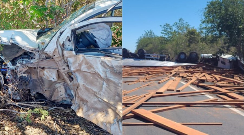 Um grave acidente de trânsito foi registrado, na manhã deste domingo (20), na rodovia BR-316, trecho do município de Valença do Piauí. A colisão frontal envolveu um carro de passeio, modelo Fiat Palio e um caminhão carregado com madeiras.