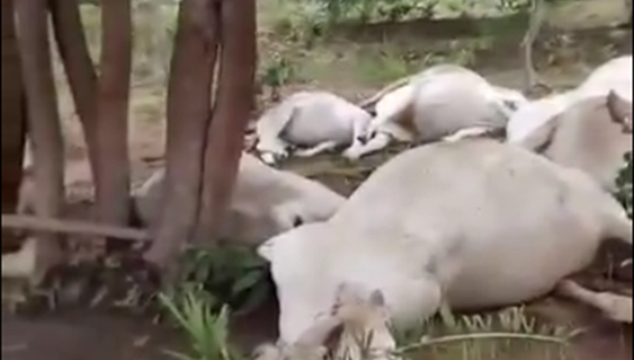 Um vídeo que mostra os animais mortos na área atingida pela descarga elétrica foi divulgado nas redes sociais.