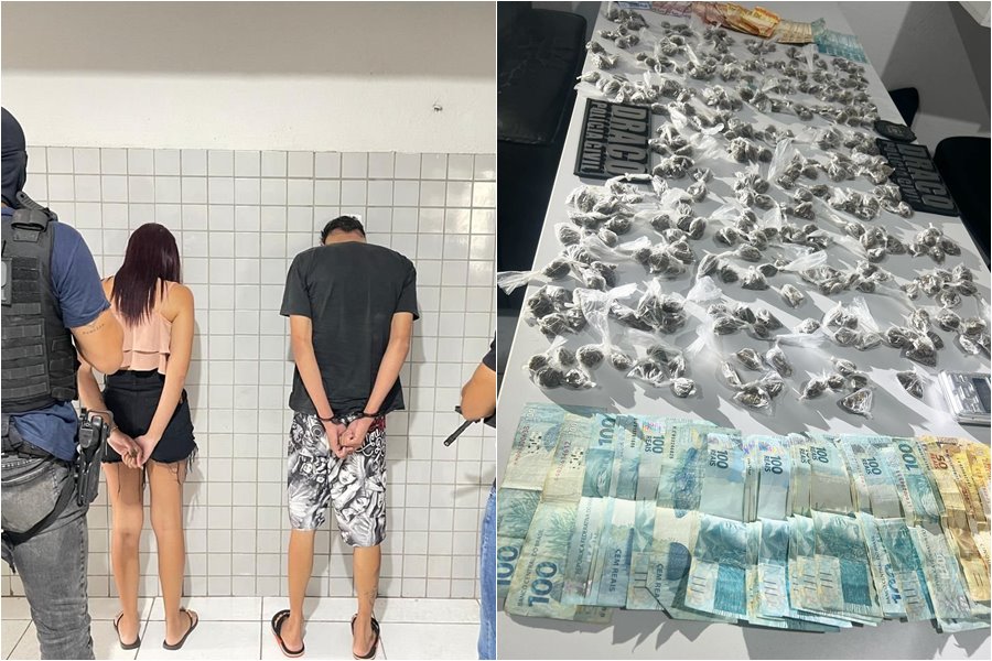 Durante a ação, um casal foi abordado após monitoramento policial. Com eles, os agentes encontraram 321 invólucros de substância análoga à maconha, além de mais de R$ 4 mil em espécie. O casal foi preso em flagrante e o inquérito policial foi instaurado para dar continuidade às investigações.