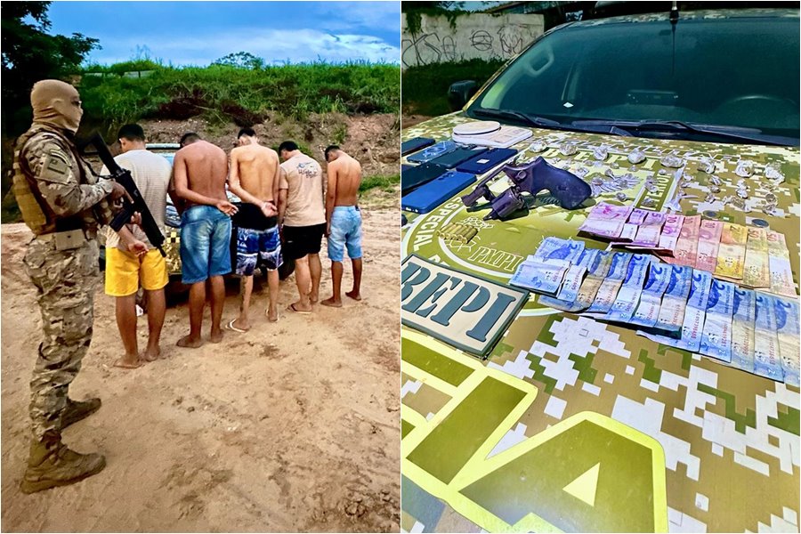 A 1ª Companhia do Batalhão Especial de Policiamento do Interior (BEPI), apreendeu entorpecentes, uma arma de fogo e outros materiais durante uma operação realizada na quinta-feira (27), no bairro Vila Mandacaru, na zona Sudeste de Teresina. Os materiais estavam em posse de um grupo composto por três menores e dois adultos.