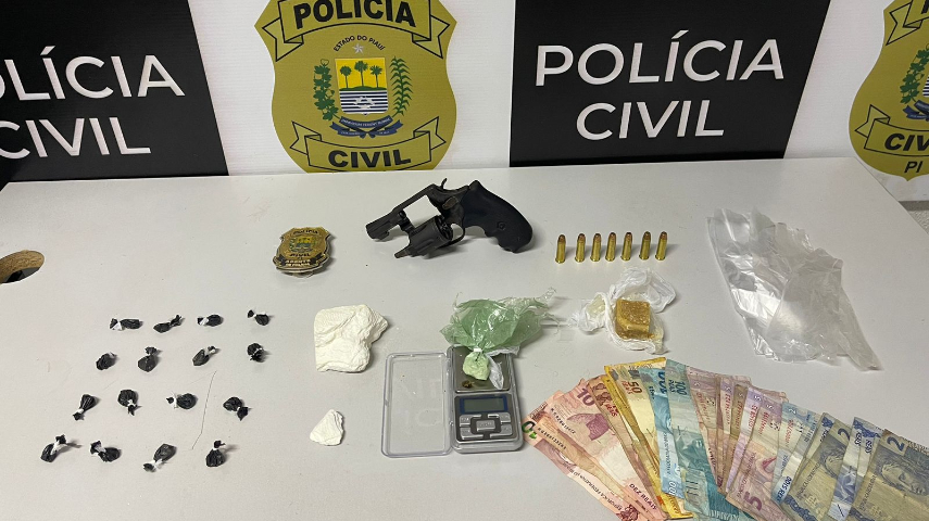 Drogas, arma, dinheiro e munições foram apreendidos | Foto: Ascom PCPI