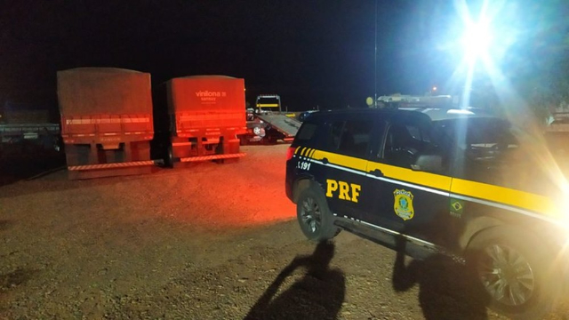 Em um primeiro momento, os policiais abordaram um caminhão com semirreboque, que era conduzido por um homem de 40 anos. Dando início aos procedimentos, a equipe solicitou a apresentação dos documentos exigidos para Combinação de Veículos de Carga (CVC). Seguidamente, o condutor entregou uma Autorização Especial de Trânsito (AET), que constava dados e informações referentes ao comprimento e peso do veículo.