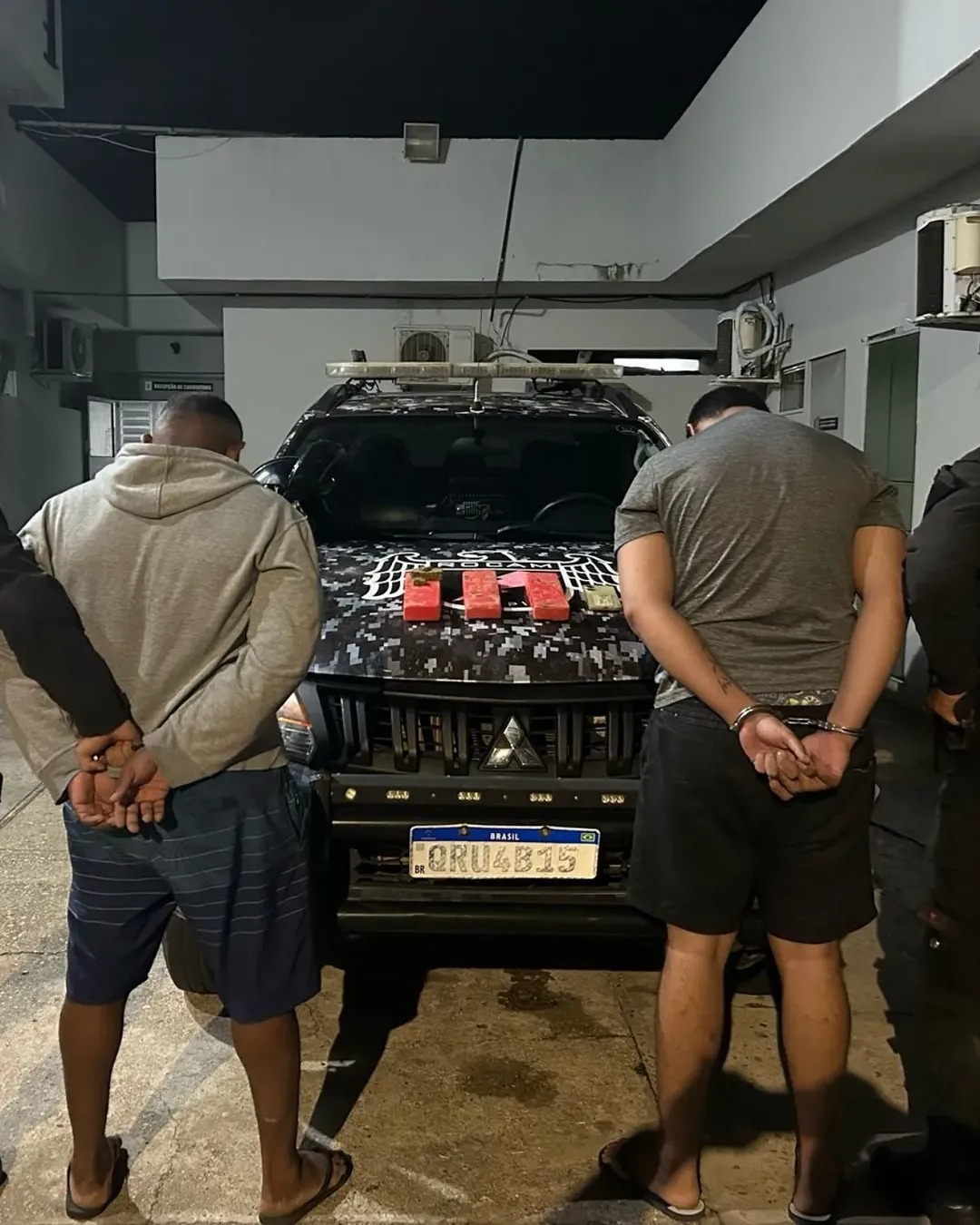 Conforme a PM, os suspeitos foram abordados no momento em que realizavam a transação. Um deles tentou fugir, mas foi contido pela equipe policial. A polícia divulgou somente as iniciais dos presos: M. V. M. F. e L. P. N. C.