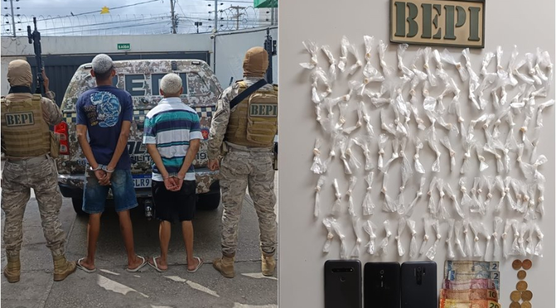 Dois jovens, identificados pelas iniciais G. F. M. L. F., de 18 anos, e K. K. C. C., de 20 anos, foram presos na tarde de quarta-feira (13), por suspeita de tráfico de drogas, durante patrulhamento realizado pela 1ª Companhia do Batalhão Especial de Policiamento do Interior (BEPI). A abordagem aconteceu por volta das 12h40 , no bairro Porenquanto, zona norte da capital.