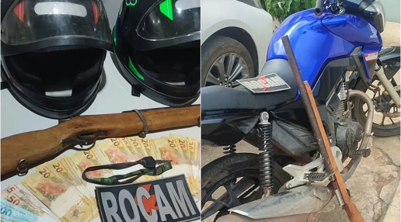 Durante as buscas, os policiais localizaram a dupla em meio a um grupo de pessoas e realizaram a abordagem no bairro Morada Nova. Com os suspeitos, foi encontrada a quantia de R$ 808 em espécie, cuja origem não foi informada. Um dos abordados admitiu participação no crime e indicou o local onde estavam escondidas a motocicleta utilizada na ação e a arma de fogo.
