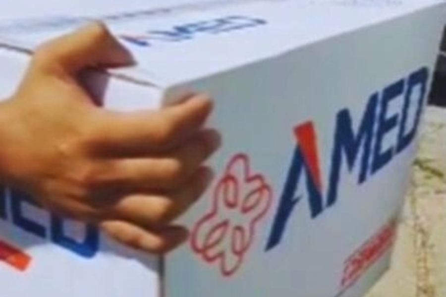 Imagem mostra a caixa de gaze furtada pelos funcionários e que foi apreendida pela polícia na empresa do receptador, nessa segunda-feira (29) | FOTO: Reprodução
