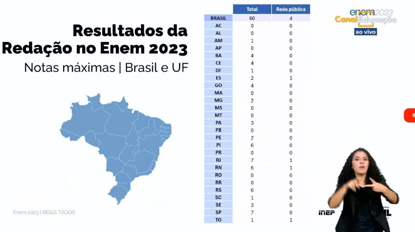 Ao todo, foram registradas 60 notas máximas no país. O Piauí, ao lado do Rio Grande do Norte, obteve o segundo melhor resultado do país, com seis novas notas máximas. À frente, ficaram São Paulo e Rio de Janeiro, cada um com sete redações alcançando a maior pontuação possível.