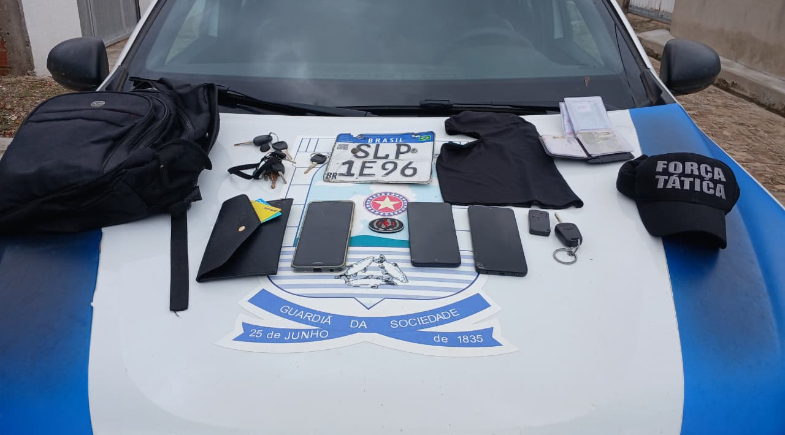 Após o assalto, equipes do 22º Batalhão da Polícia Militar foram acionadas e iniciaram diligências. Os dois suspeitos foram abordados ainda pela manhã, e com eles os policiais encontraram duas chaves de veículos — uma delas pertencente a uma das vítimas.