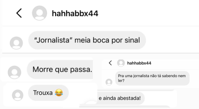“Ela não tinha limites para me enviar mensagens, começando imediatamente a atacar minha honra. Chegou um momento em que não consegui mais suportar a pressão psicológica, o desconforto e decidi procurar a Polícia, que fez um trabalho excelente e identificou essa moça. Que ela pague na justiça agora”, disse.