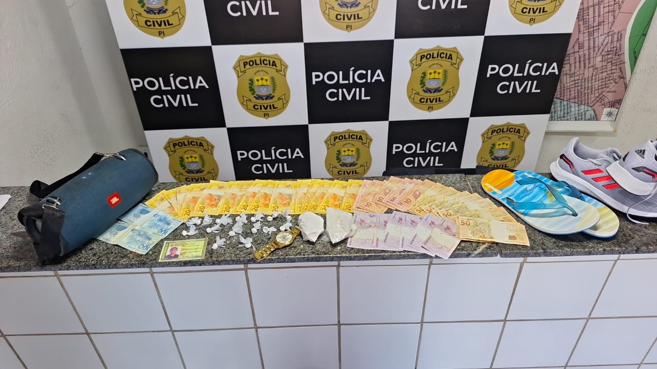 No local foram apreendidos cocaína e R$ 1.030 em dinheiro em espécie, supostamente oriundos de crime. Ele foi identificado pelas iniciais S.D.D.S.A. “Ele se evadiu com a chegada dos policiais, mas as investigações continuam no sentido de prendê-lo”, informou o delegado.