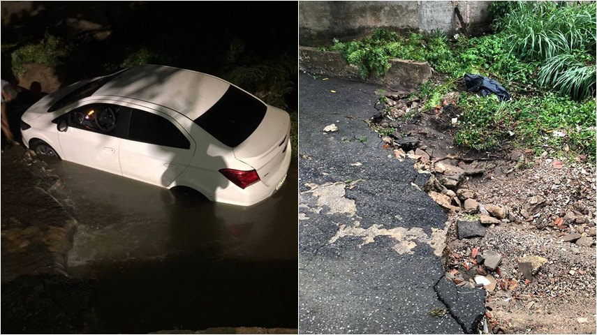 O veículo trafegava pela rua, quando a forte enxurrada arrastou o carro. Moradores da rua tiveram que jogar uma corda para socorrer o motorista. Ele teve que pular na água, e os moradores, com muito esforço, conseguiram tirar ele da água.