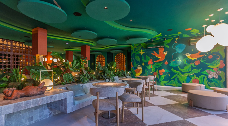 E não para por aí! Para quem deseja experimentar ótimos drinks, pode visitar o “B. Arte”, assinado por Isabela Portela. O ponto de partida do bar é o design do balcão central em formato de trevo, que simboliza sorte e crescimento. Este elemento é o coração do bar e também convida à socialização, promovendo interações mais próximas entre o público. Inspirado pelo icônico estilo Art Déco, o projeto destaca uma paleta de cores vibrantes e linhas geométricas, acentuadas por sofisticados detalhes em dourado.