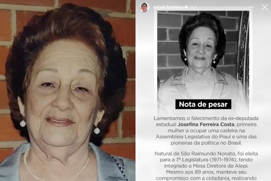 O Governador do Piauí, Rafael Fonteles, expressou profundo pesar pelo falecimento de Josefina Ferreira Costa, a primeira mulher a ocupar uma cadeira na Assembleia Legislativa do Piauí (Alepi). Em nota oficial, divulgada neste sábado (24), o gestor destacou o legado da ex-deputada, que é considerada uma das pioneiras da política feminina no Brasil.
