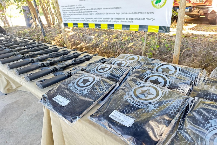 Foram adquiridos uniformes e equipamentos táticos individuais no valor de R$ 307.087,50, incluindo coldres de perna, cintos táticos, porta-carregadores, porta-algemas, bonés, calças, gandolas, combat shirts, botas táticas e 150 capas de colete balístico. Também foram entregues 300 carabinas ARAD 5,56mm multicalibre, de fabricação israelense, avaliadas em R$ 3.785.621,30. Todo o investimento foi realizado com recursos do Fundo de Segurança Pública.