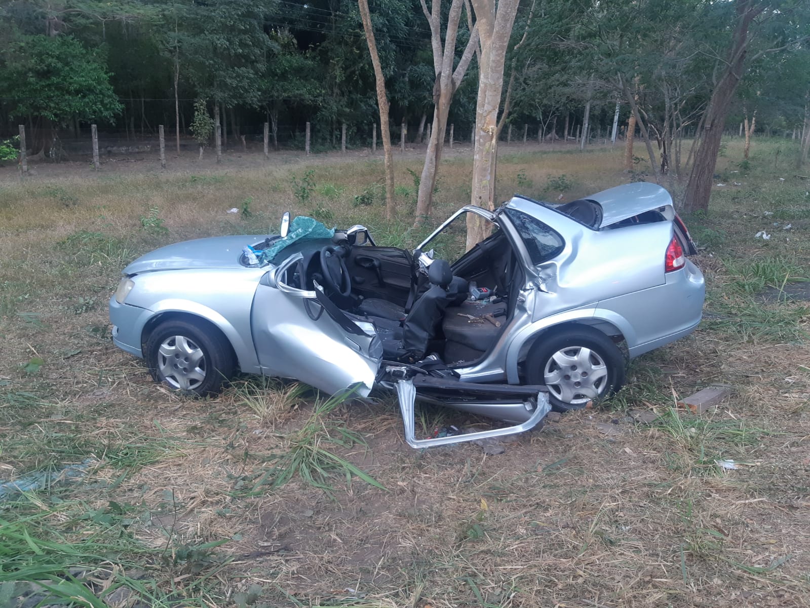 Três mulheres ficaram feridas após o carro em que estavam sair de pista e colidir violentamente contra uma árvore na tarde desta terça-feira (6), no KM 323 da BR-343, entre Teresina e Altos.