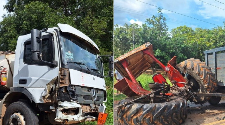 Imagens registradas após o acidente mostram os danos materiais causados. Devido ao forte impacto, o caminhão ficou com a frente totalmente destruída, enquanto o trator foi partido em duas partes.