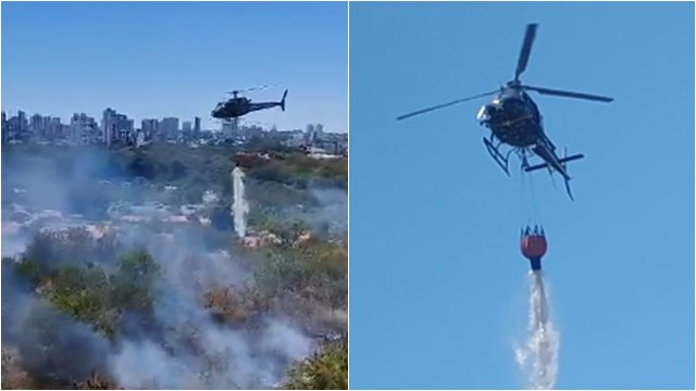 "Nós fomos acionados pelo Corpo de Bombeiros, solicitando esse apoio, pois o acesso da guarnição deles estava um pouco difícil. Então, para a aeronave foi mais fácil coletar a água do rio e jogar lá no terreno. Esse terreno é um terreno baldio, acho que alguém ateou fogo e estava ameaçando um depósito de gás que é próximo a algumas casas. A aeronave foi acionada e levou pouco mais de 30 minutos para sanar o problema. Debelamos o fogo inicialmente e depois o rescaldo o bombeiro tomou conta da operação", disse.