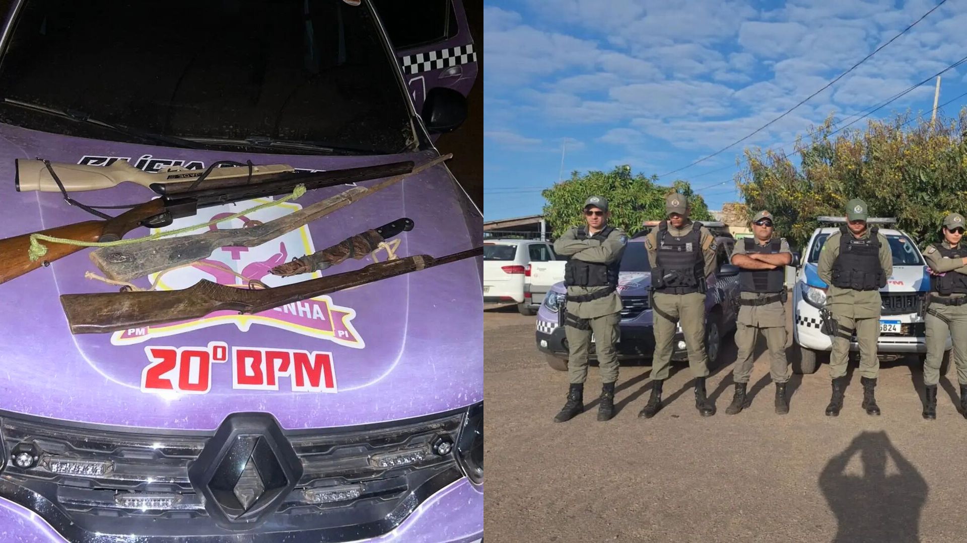 Na residência do suspeito, foram apreendidos espingardas, facão e munições.