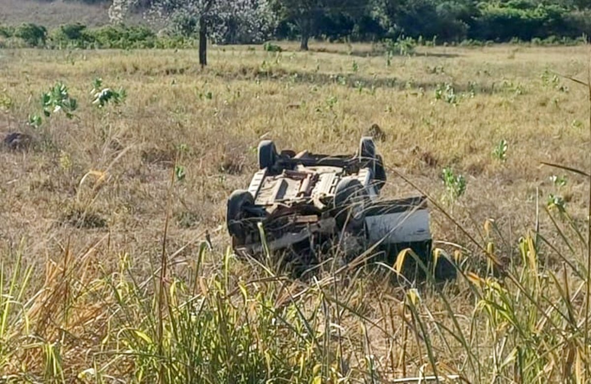 O veículo teria derrapado na pista, ocupando o sentido contrário e saiu do leito carroçável. Por conta do terreno irregular, o carro capotou e ficou com os quatro pneus para cima.