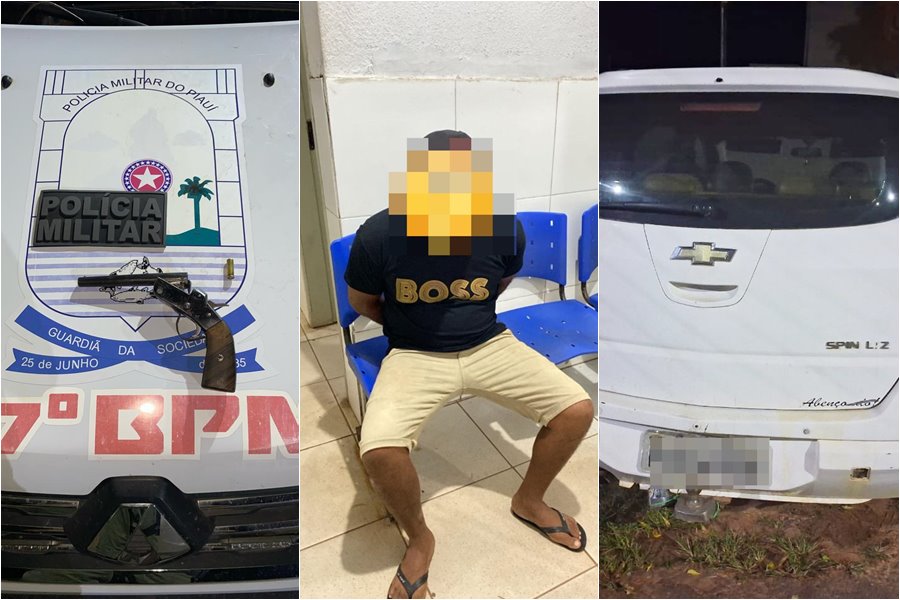 Homem com arma de fogo em carro é conduzido à delegacia na cidade de Corrente | Foto: Divulgação/PMPI