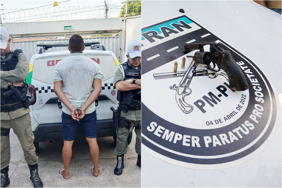 Na revista pessoal, os policiais encontraram na cintura do condutor um revólver calibre .38, contendo duas munições intactas. Diante dos fatos, P.H.S. recebeu voz de prisão e foi encaminhado à Central de Flagrantes para os procedimentos legais.