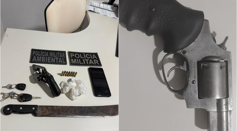 Durante uma varredura mais detalhada no ambiente, os policiais localizaram um revólver calibre .38 SPL, próximo ao local onde o abordado se encontrava. Ao ser questionado, ele confessou ser o proprietário da arma.