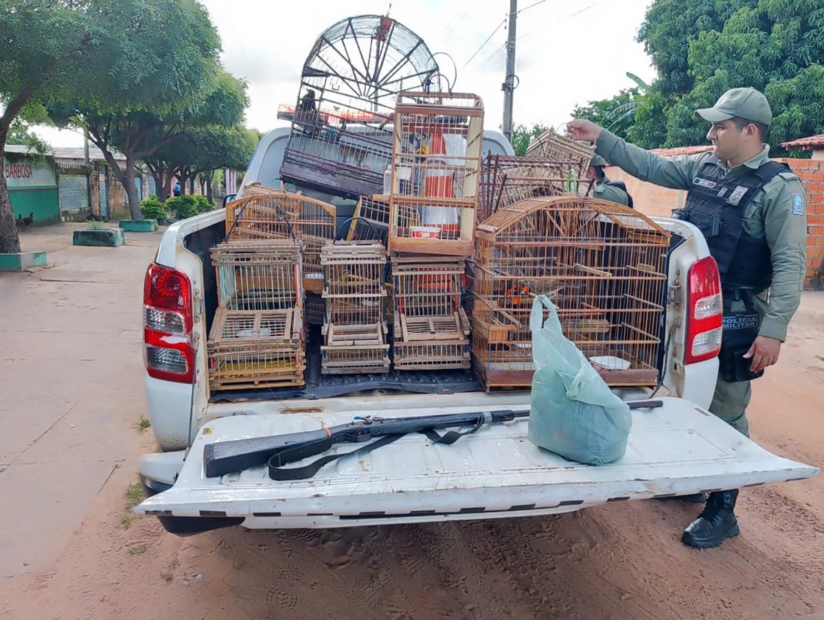 Uma ação da Polícia Militar na tarde dessa terça-feira (9), resultou na apreensão de uma arma de fogo e na retirada de 13 aves silvestres mantidas ilegalmente em cativeiro no bairro Cohebe, em São João do Arraial. O autor, identificado pelas iniciais A. A. F, foi conduzido à Delegacia de Polícia Civil de Matias Olímpio, onde foram adotadas as medidas legais cabíveis.