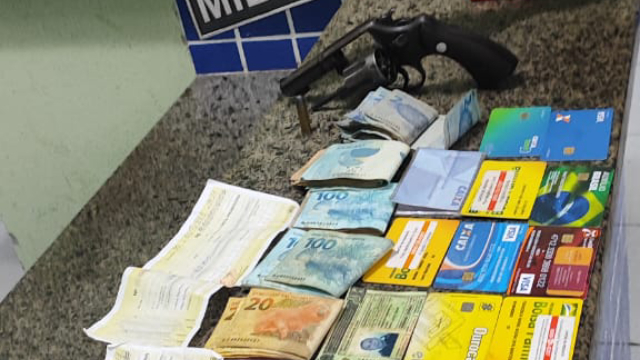 Por volta das 13h,no último sábado (07), a equipe estava fazendo ronda, quando avistou um carro preto conduzido pelo indivíduo. Ao ser abordado, as autoridades encontram, no veículo, um revólver calibre 38, com uma munição intacta, alguns cartões em nome de terceiros e R$ 4.513,00 reais