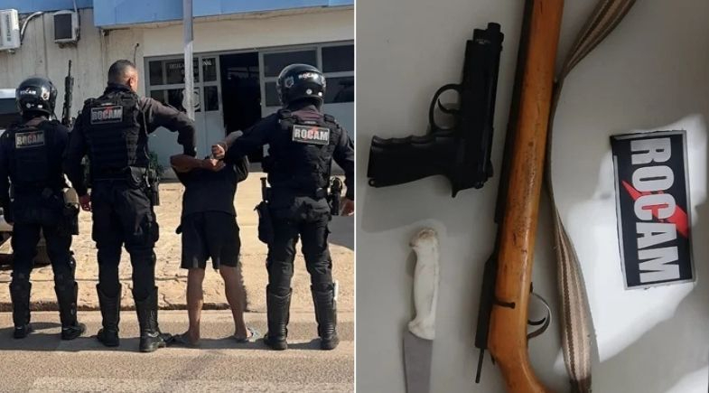 Na ação, os militares apreenderam uma espingarda, uma pistola e uma faca. O homem, as vítimas e o material foram levados para a Central de Flagrantes de Picos.