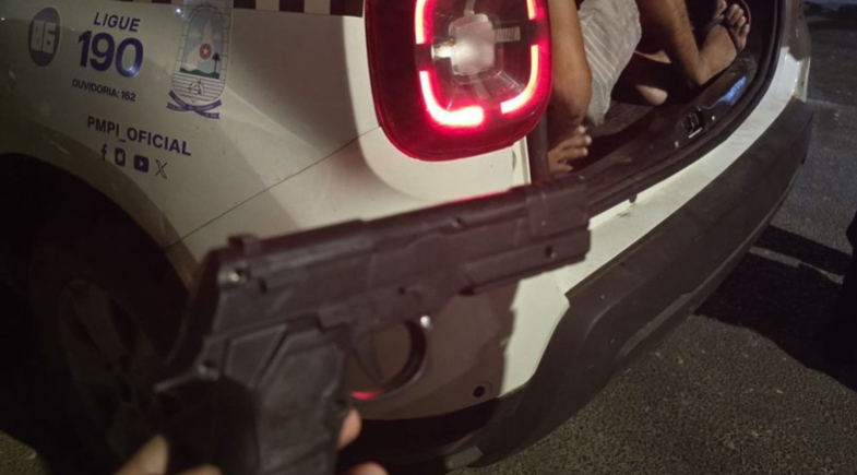 Na revista, os militares encontraram um simulacro de arma de fogo. O homem também apresentava sinais de embriaguez. O teste do bafômetro apontou 0,81 mg/L de álcool no ar expirado.