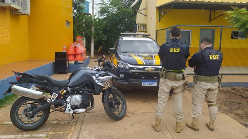 Durante a abordagem, os agentes solicitaram a documentação do veículo, de modelo GM C20. No entanto, uma motocicleta, modelo BMW/F750 GS, que estava sendo transportada na carroceria do automóvel chamou a atenção da equipe.