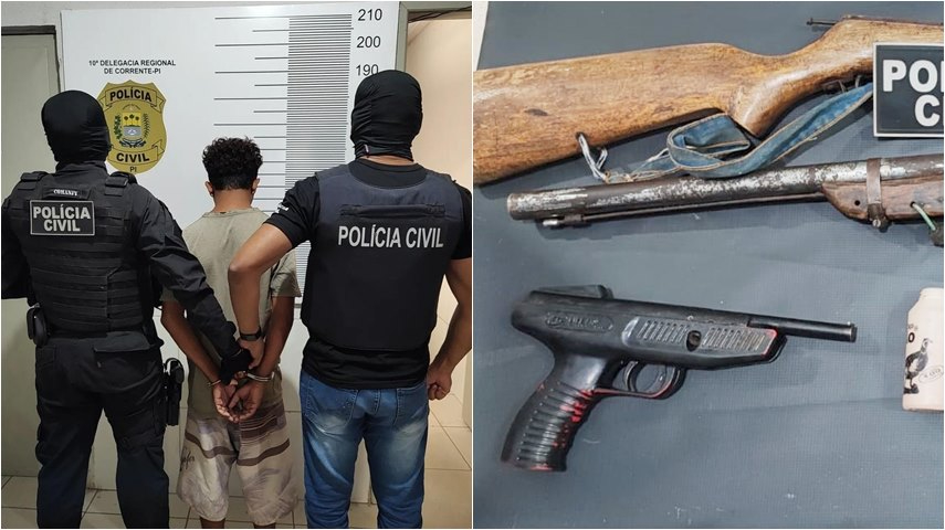 Um homem, identificado pelas iniciais C.F.S, foi preso na manhã desta terça-feira (28) por porte ilegal de arma de fogo na zona rural do município de Corrente. Com ele foram apreendidas três armas e munições. A ação foi realizada pela Delegacia de Corrente, com apoio da Polícia Militar