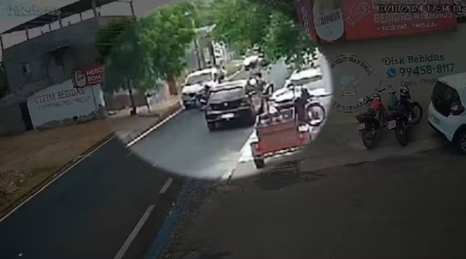 Câmeras de segurança capturaram o momento em que o suspeito, utilizando uma moto, obrigou a vítima a parar seu carro. Ele então invadiu o veículo e forçou a mulher a acompanhá-lo.