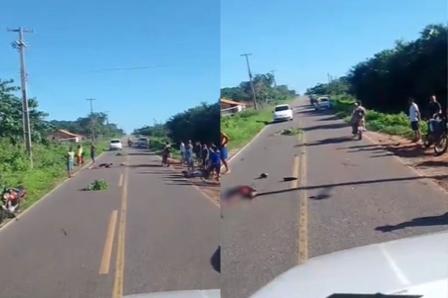 Imagens gravadas por populares mostram a vítima caída ao chão ao lado de uma motocicleta.