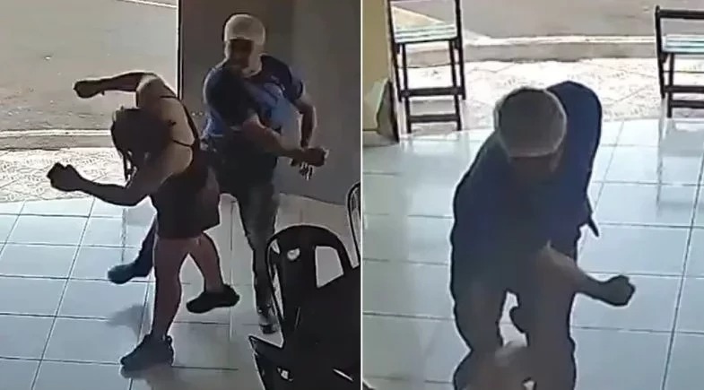 As imagens, registradas por uma câmera de segurança, mostram o agressor desferindo um soco no rosto da vítima, que cai no chão. Em seguida, mesmo com a mulher caída, ele aplica outro golpe. O caso aconteceu na última sexta-feira (8), mas só veio a público na terça-feira (12).