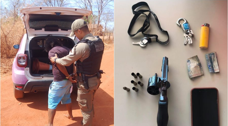 Nesta quarta-feira (24), no bairro Vermelhão em Corrente, no Sul do Piauí, a Polícia Militar com apoio de uma viatura da Maria da Penha atenderam a uma ocorrência onde dois indivíduos armados estavam ameaçando moradores na cidade de Cristalândia.