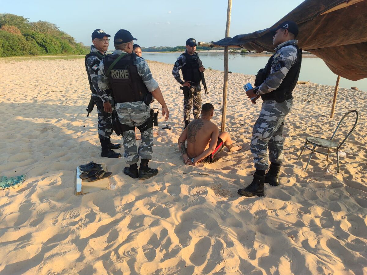 Ao chegarem, os policiais avistaram os suspeitos, que imediatamente tentaram escapar pela água. No entanto, L.N.H.M. foi interceptado e detido ainda às margens do rio. Após consulta ao Banco Nacional de Mandados de Prisão (BNMP), foi confirmado que havia um mandado de prisão contra ele pelo crime de associação criminosa.