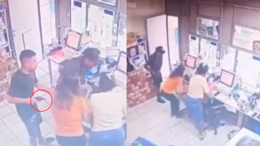 COMO ACONTECEU? Nas imagens, é possível ver que há duas funcionárias na parte de dentro da lotérica, quando outra colaboradora tenta entrar, mas é surpreendida por um dos bandidos, que está de boné e roupas pretas. Então, ele entrega sacolas para as mulheres colocarem o dinheiro que está nos caixas.