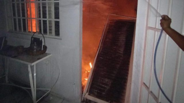 Dois bombeiros que estavam em casa de folga perceberam a situação e tentaram controlar as chamas antes da chegada da viatura do Corpo de Bombeiros.