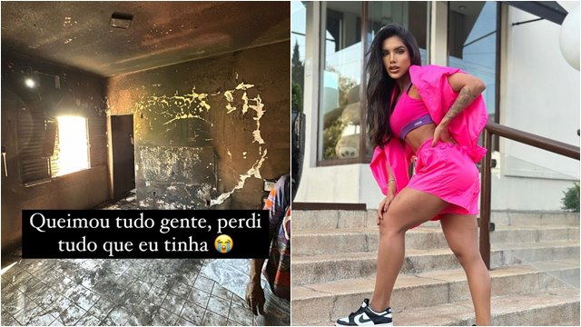 Nas redes sociais, ela lamentou a perda de objetos pessoais como cama, painel de TV, cabeceir, armário, frigobar, roupas, perfumes, joias, maquiagens e computador. ''Queimou tudo gente, perdi tudo que eu tinha'', disse.