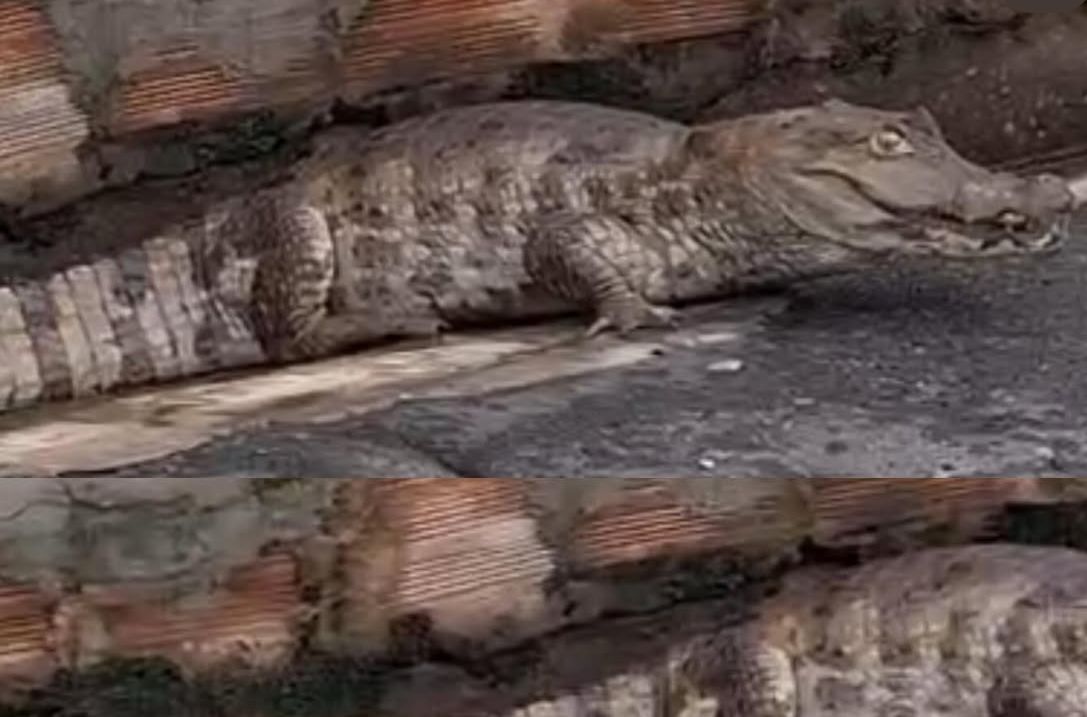 Após fortes chuvas, um jacaré de aproximadamente 1 metro foi visto em uma via pública no bairro Nova Brasília, na zona norte de Teresina. O ocorrido aconteceu na última sexta-feira (21).