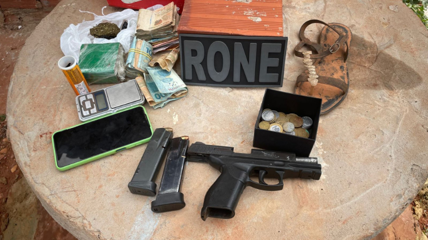 A polícia afirmou que com o suspeito estava: uma pistola calibre 40, com numeração suprimida; dois carregadores; 25 munições, duas porções de maconha;15 trouxinhas de cocaína; uma balança de precisão; um celular, além de uma quantia de R$ 10.193, 50. O suspeito foi conduzido e apresentado na Central de Flagrantes para os procedimentos legais.