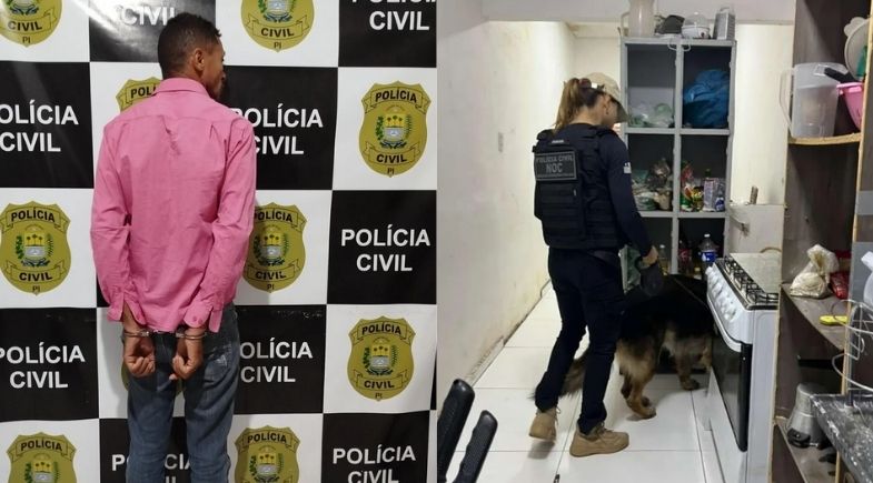 Suspeito preso e operação da delegacia em Oeiras. | Foto: Delegacia de Oeiras