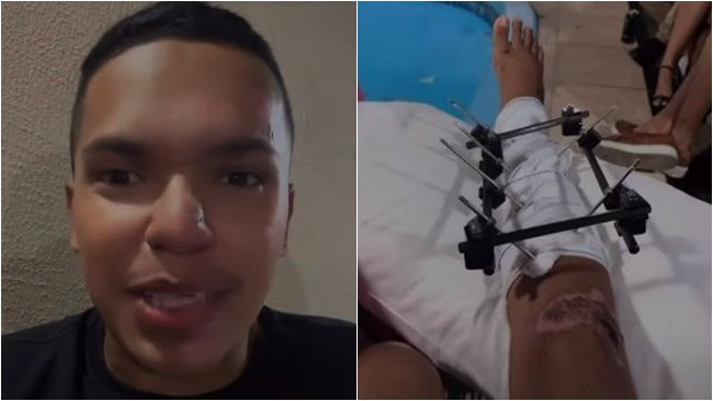 O influenciador teve que passar por uma cirurgia para fixação de pinos e placas, a fim de corrigir a fratura óssea em sua perna esquerda. Ele também sofreu escoriações no nariz, boca, queixo e testa, e precisou levar pontos no rosto. i O procedimento cirúrgico foi realizado no Hospital de Urgência de Teresina (HUT), e durou mais de cinco horas.