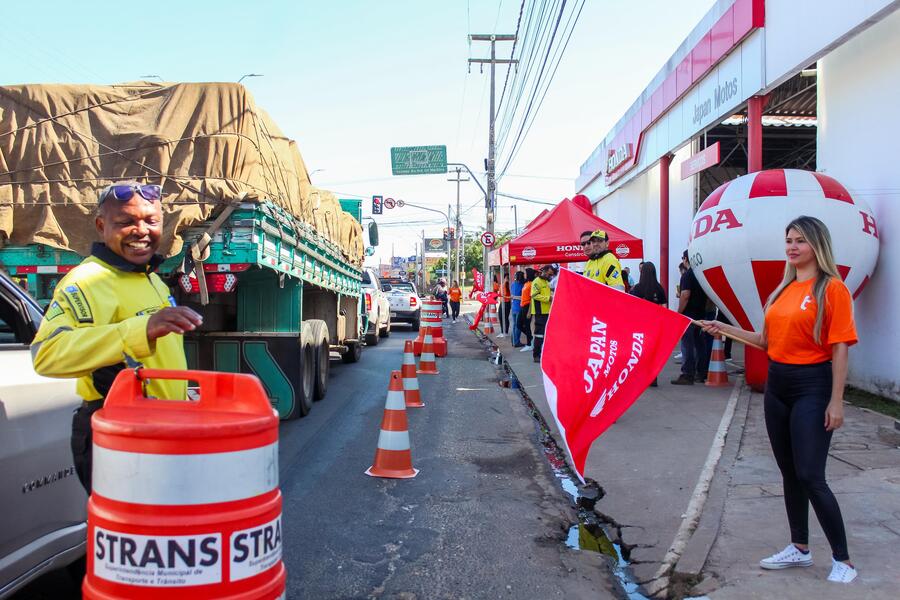 A organização realizou a distribuição de materiais informativos para condutores e pedestres, além de um PIT STOP com atividades voltadas à pilotagem segura.
